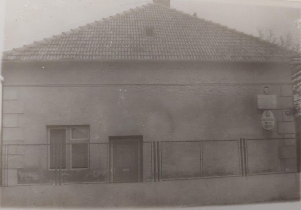 A képen látható a bögellői iskola, melyet 1905-ben épített a falu akkori közössége, a napjainkban is álló harangláb mellett állt.