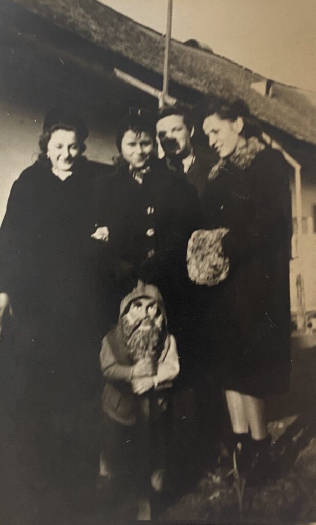 Családi fotó, mely az 1950-es években készült az Anglia parkban, pontosabban a törpés-parkban.